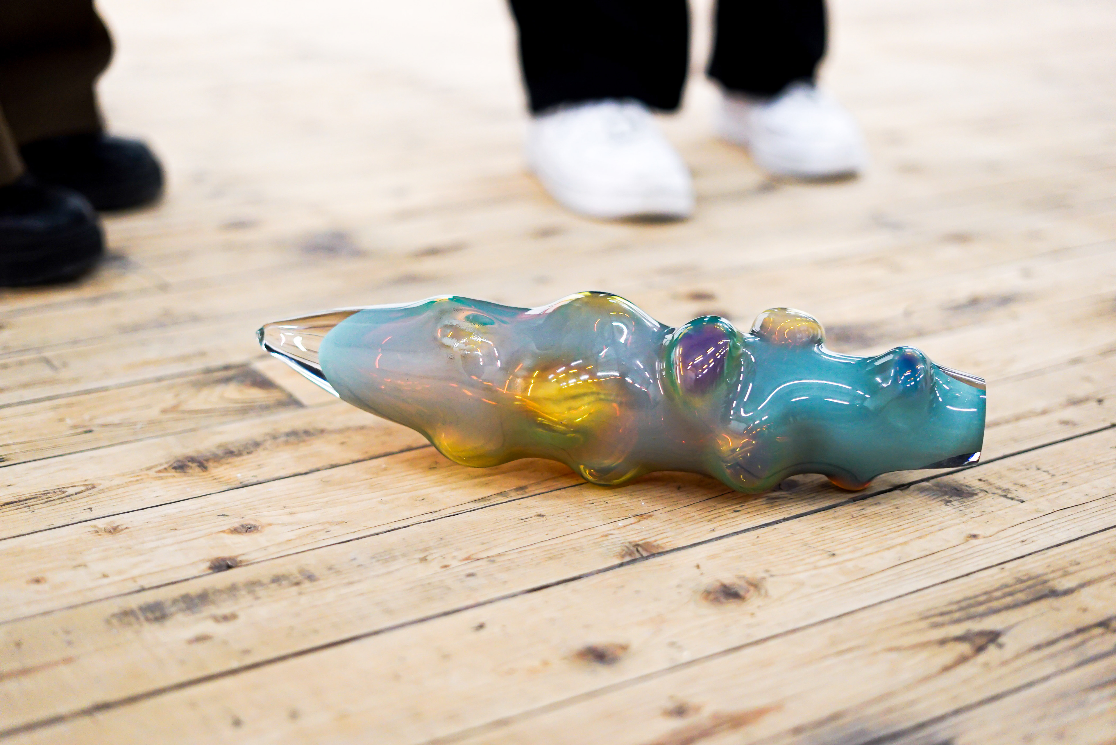 Usually, when it comes to blowing glass, the shape determines the blowing technique. Here, I mobilize the techniques used in opera singing to create sculptures from musical excerpts, by singing into the cane. Each protuberance corresponds to a note, more or less held, more or less high, mobilizing more or less my vocal capacity. Like partitions, The underneath songs series are the plastic writings of musics being played.