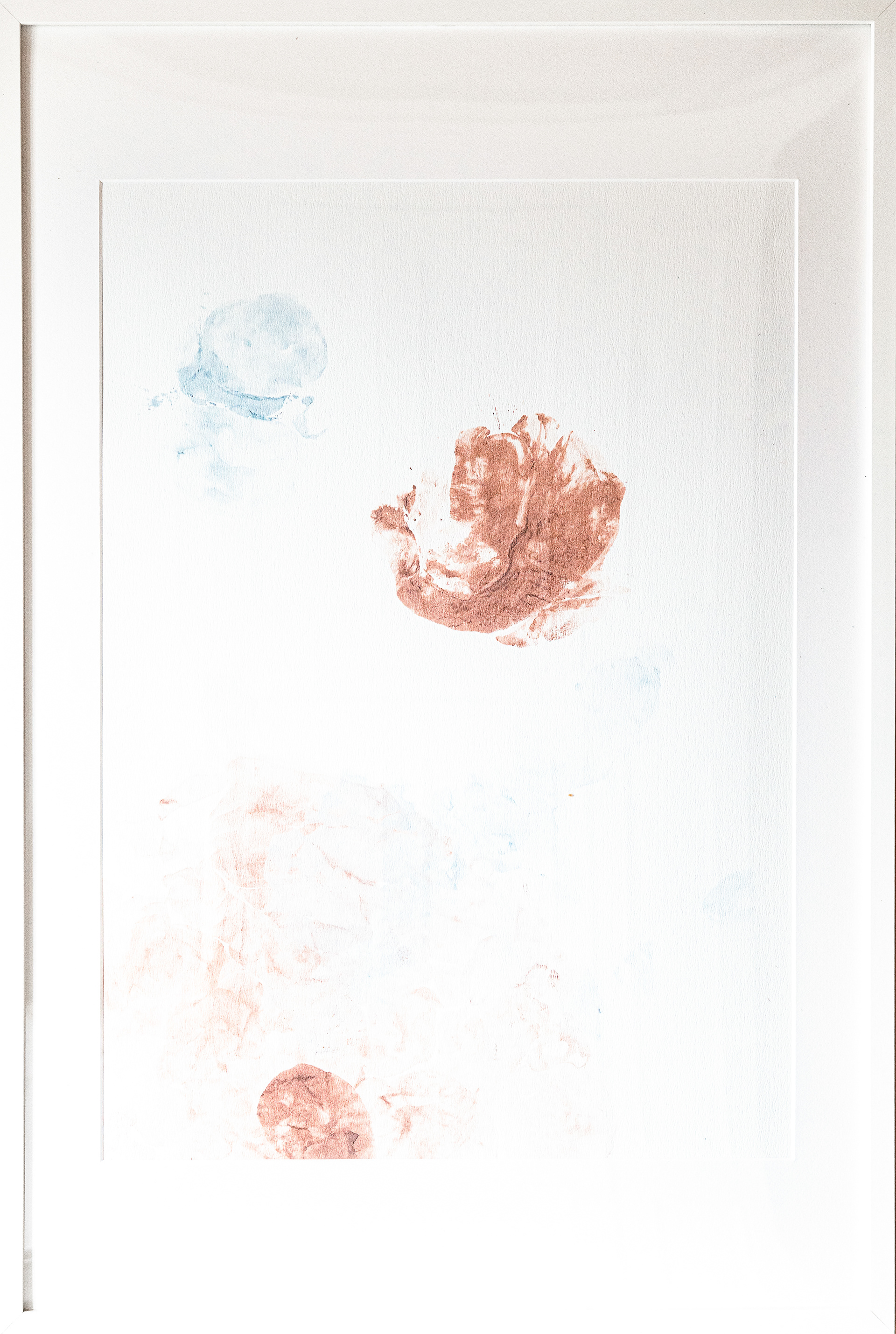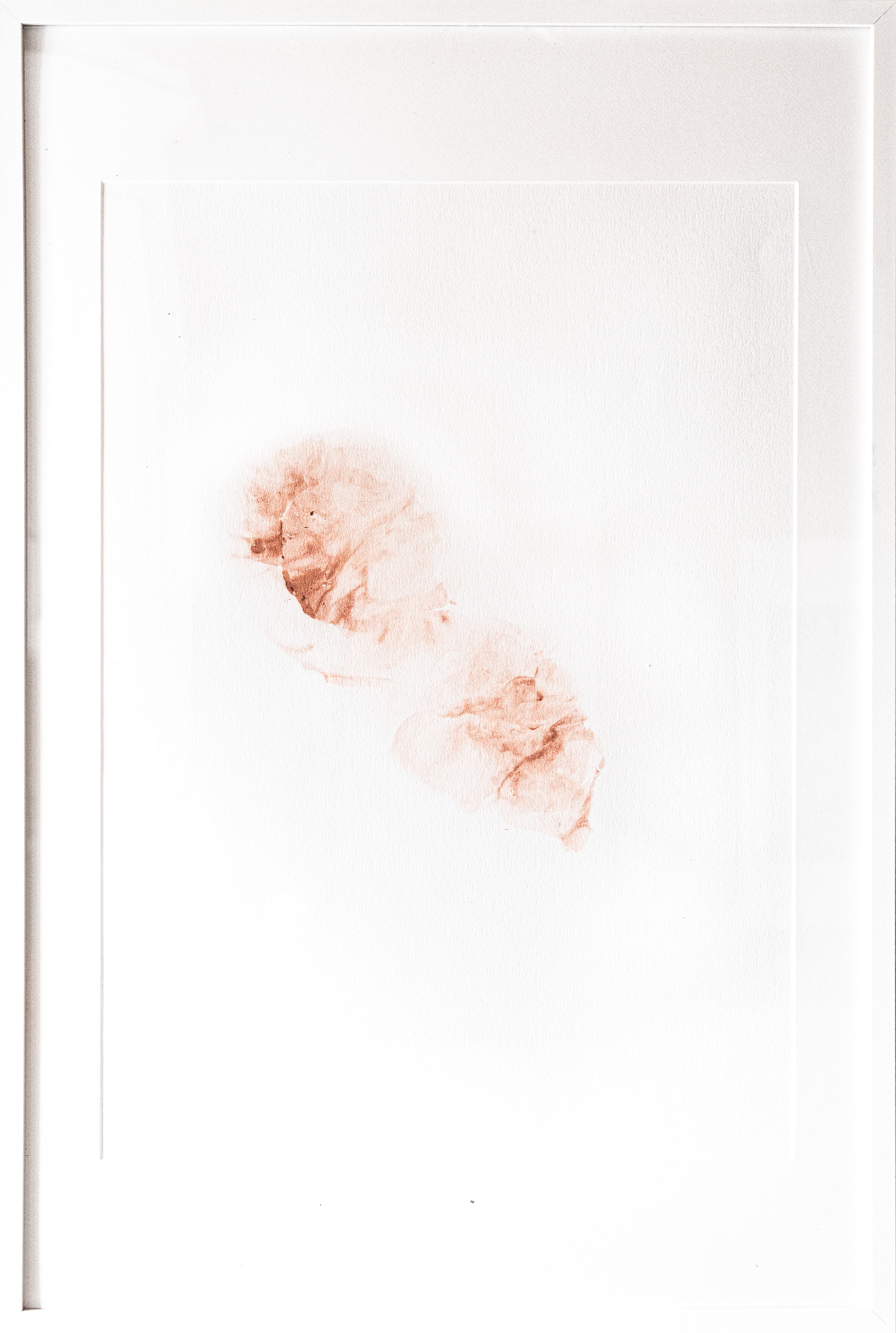 Initiée pour une commande faite par l’institut Godinot lors du mois de la lutte contre le cancer du sein pour l’exposition « Féminités », cette recherche établit une analogie entre le papier et la chair. Elle est inspirée par l’idée patriarcale traversant l’histoire de l’art selon laquelle, en sculpture, ce qui relève de la taille (d’un geste supposant de la force) est masculin et ce qui relève du modelage (d’un geste doux, lent et consciencieux) est féminin. En prenant cette idée à revers, en jetant violemment des blocs d’argile sur le papier, un dessin se forme, investissant mon corps entier. De la brutalité du geste résultent des formes douces, rondes, organiques, qui rappellent l’imagerie médicale et les tréfonds du corps qu’elle cherche à saisir.