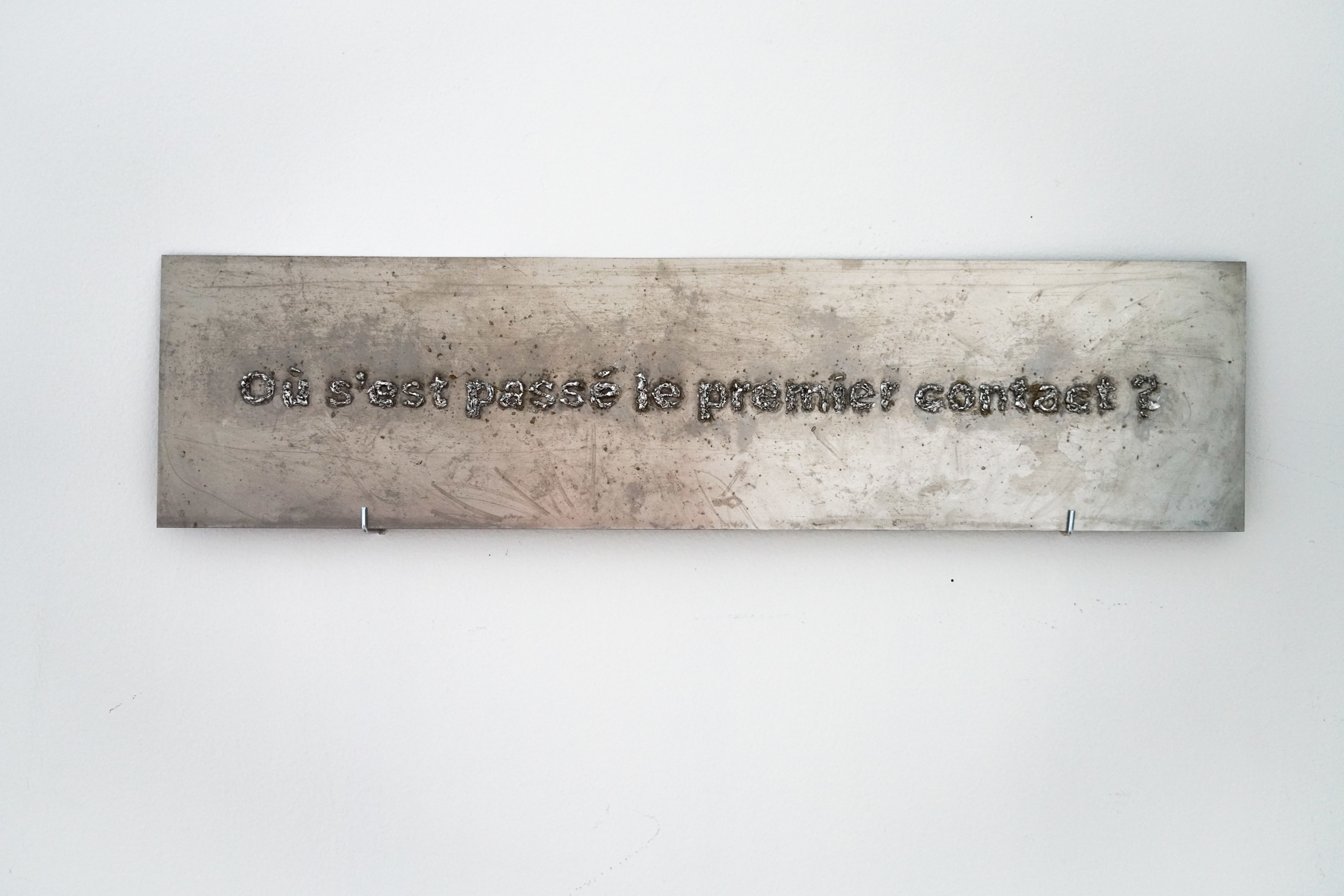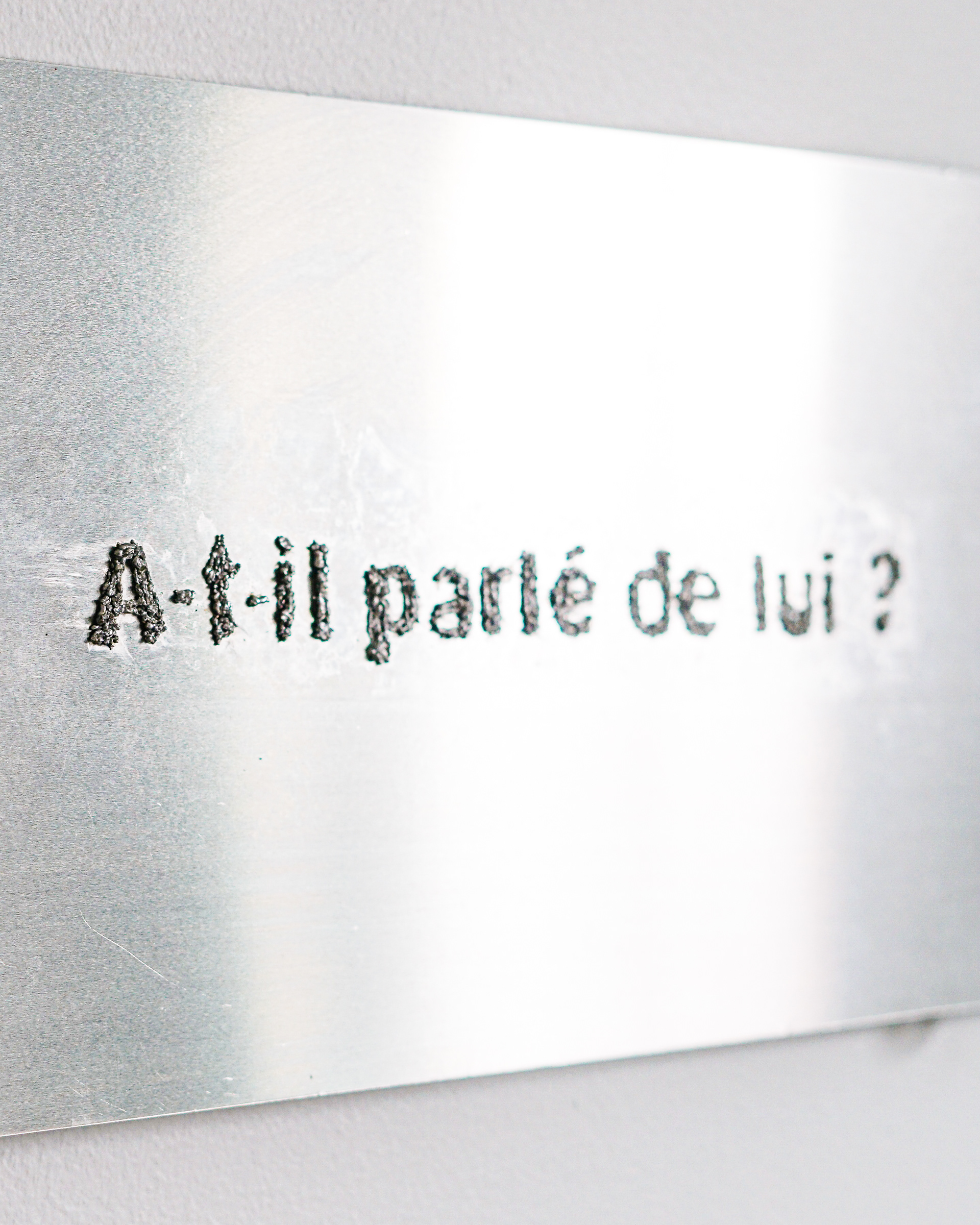 Les questions posées lors des dépôts de plainte pour viol en France sont écrites par soudure. Leurs formes cicatricielles réincarnent le poids émotionnel des mots et du souvenir qu’ils provoquent, contrastant avec la froideur administrative du cadre légal.